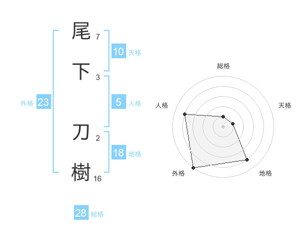 尾下 刀樹さんを姓名の画数から五運を鑑定