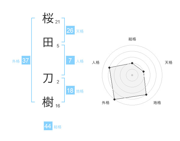 桜田 刀樹さんを姓名の画数から五運を鑑定