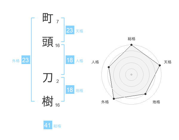 町頭 刀樹さんの天格は23画の5点!