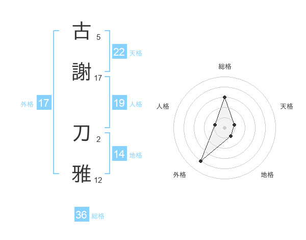 古謝 刀雅さんを姓名の画数から五運を鑑定