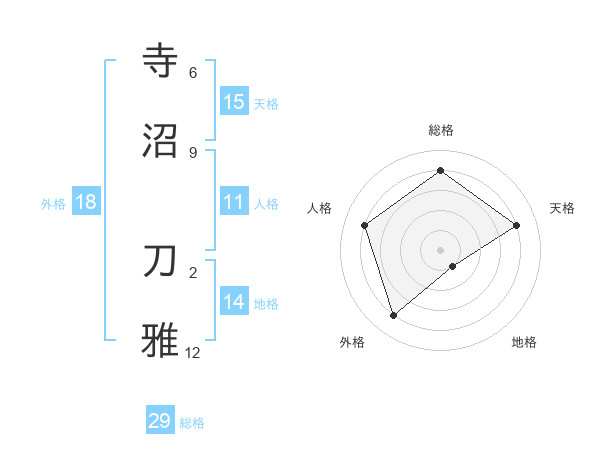 寺沼 刀雅さんの総格は29画の4点!