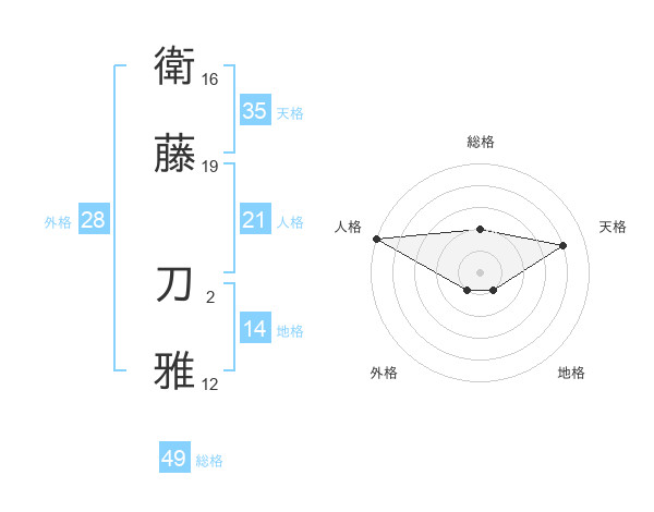 衛藤 刀雅さんを姓名の画数から五運を鑑定