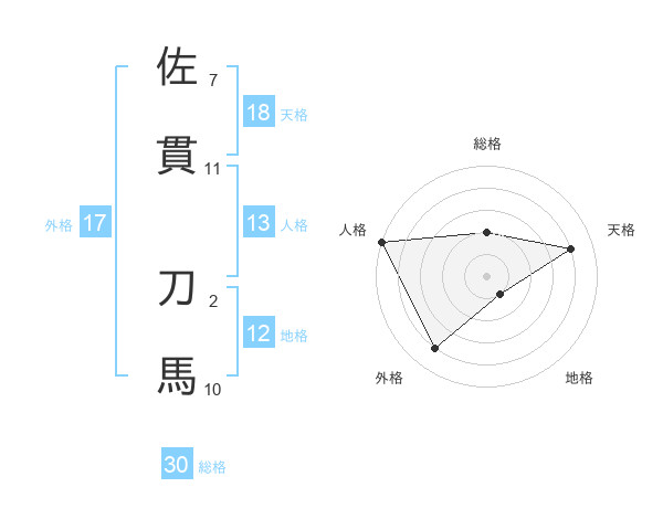 佐貫 刀馬さんを姓名の画数から五運を鑑定