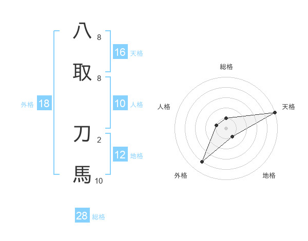 八取 刀馬さんを姓名の画数から五運を鑑定