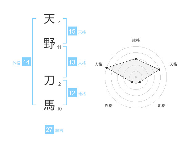 天野 刀馬さんの天格は15画の4点!