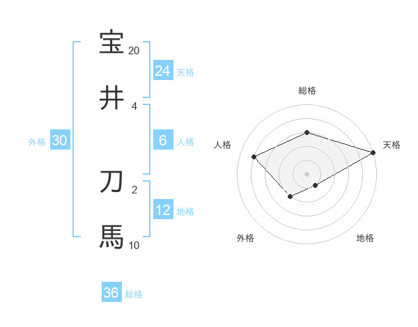 宝井 刀馬さんを姓名の画数から五運を鑑定