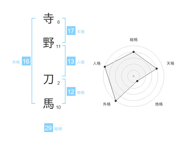 寺野 刀馬さんの総格は29画の4点!