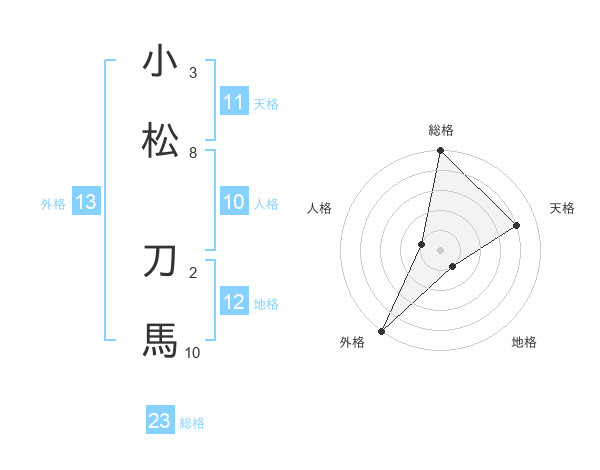 小松 刀馬さんを姓名の画数から五運を鑑定