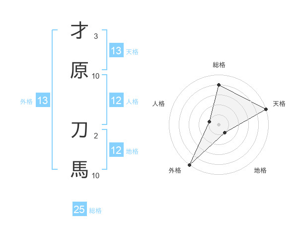 才原 刀馬さんの外格は13画の5点!