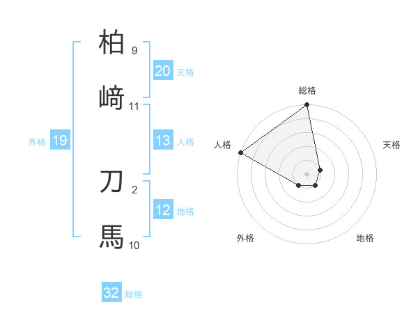 柏﨑 刀馬さんを姓名の画数から五運を鑑定