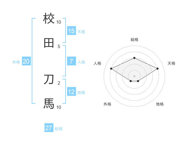 校田 刀馬さんの総格は27画の3点!