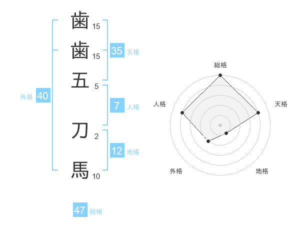 歯歯五 刀馬さんの総格は47画の5点!