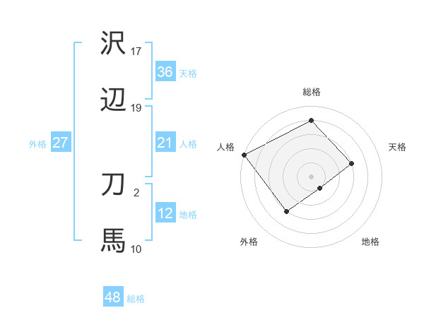 沢辺 刀馬さんを姓名の画数から五運を鑑定