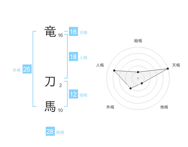 竜 刀馬さんを姓名の画数から五運を鑑定