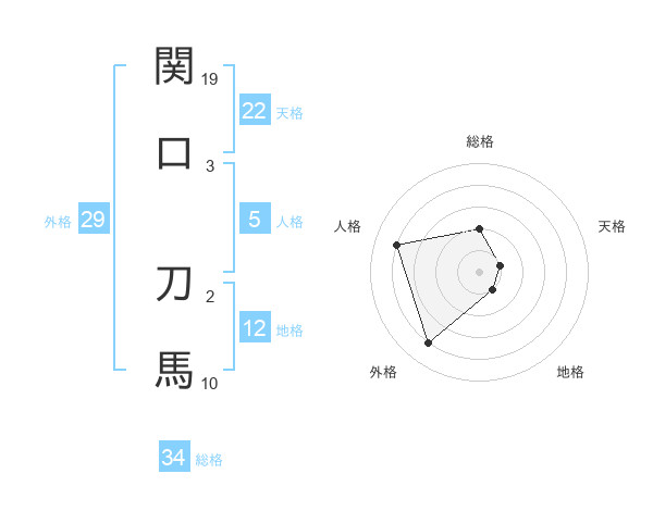 関口 刀馬さんの総格は34画の2点!