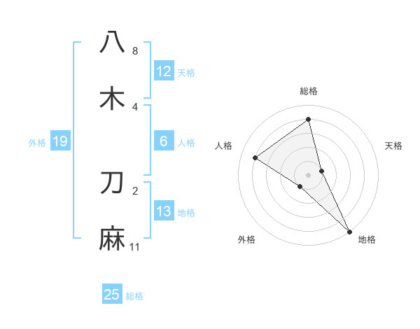 八木 刀麻さんの総格は25画の4点!