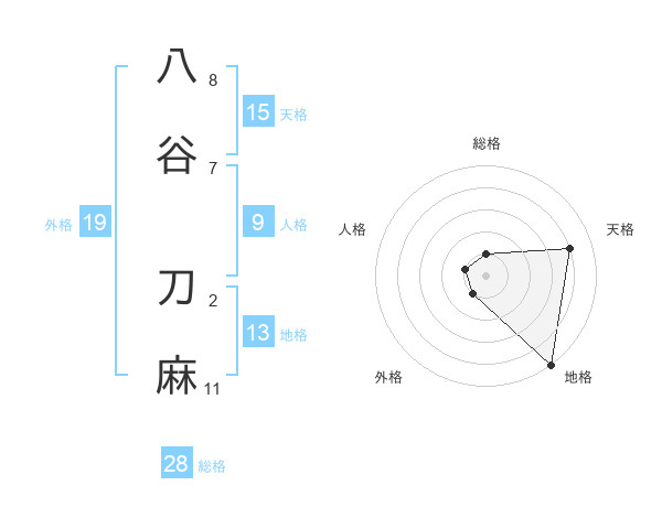 八谷 刀麻さんの総格は28画の1点!