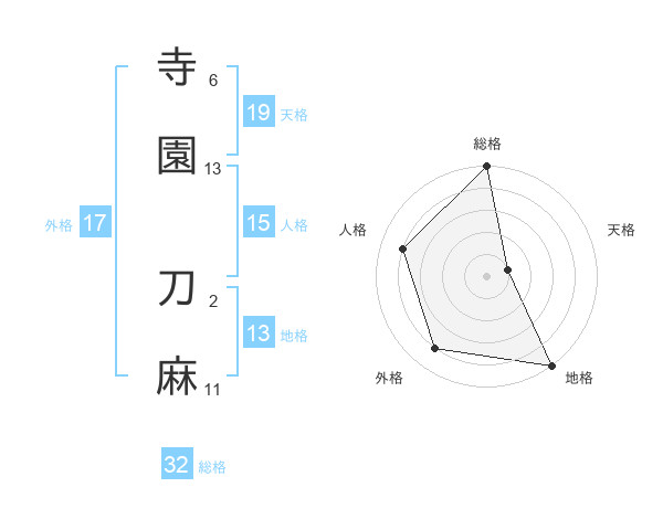 寺園 刀麻さんの総格は32画の5点!