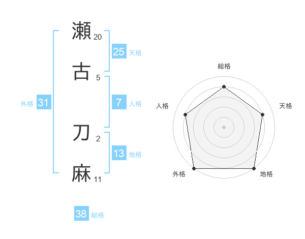 瀬古 刀麻さんを姓名の画数から五運を鑑定