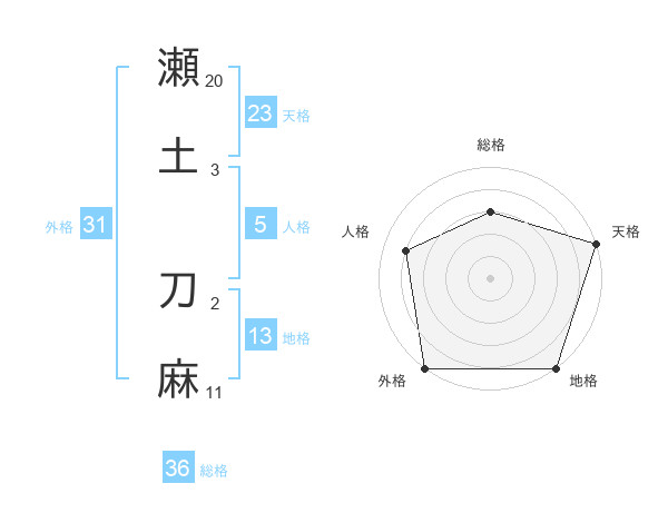 瀬土 刀麻さんを姓名の画数から五運を鑑定