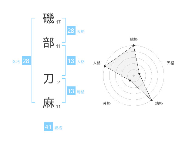 磯部 刀麻さんの総格は41画の5点!