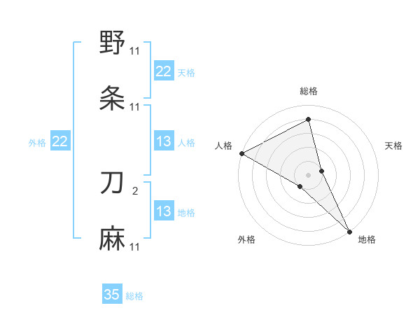 野条 刀麻さんの天格は22画の1点!