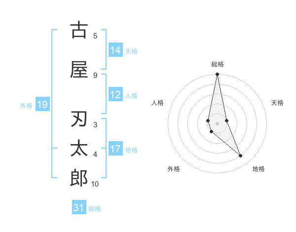 古屋 刃太郎さんを姓名の画数から五運を鑑定