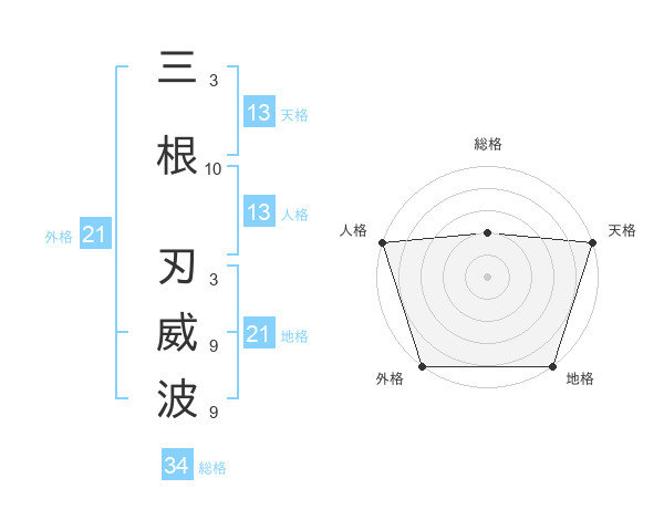 三根 刃威波さんを姓名の画数から五運を鑑定