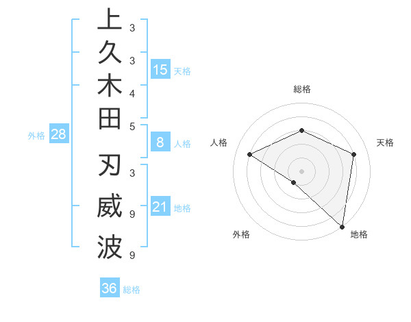 上久木田 刃威波さんを姓名の画数から五運を鑑定