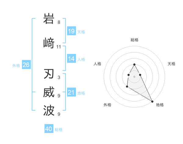 岩﨑 刃威波さんを姓名の画数から五運を鑑定