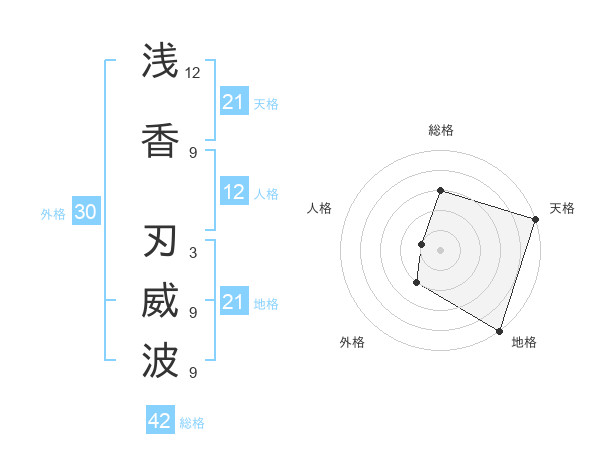 浅香 刃威波さんを姓名の画数から五運を鑑定