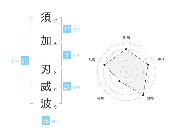 須加 刃威波さんを姓名の画数から五運を鑑定