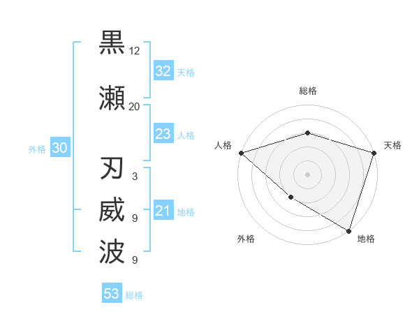 黒瀬 刃威波さんを姓名の画数から五運を鑑定