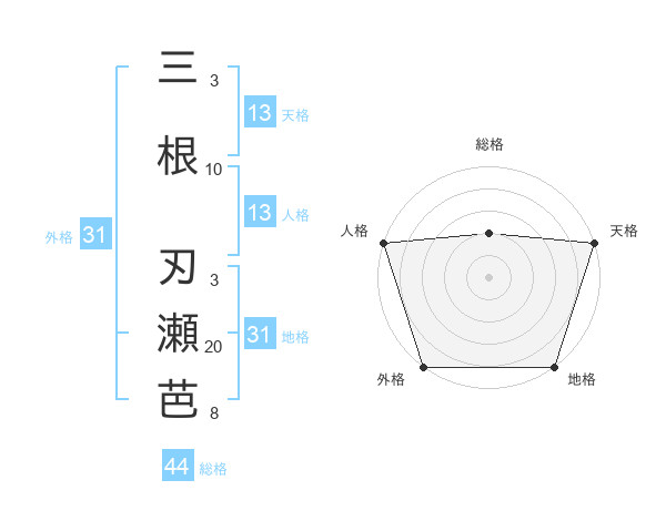 三根 刃瀬芭さんを姓名の画数から五運を鑑定