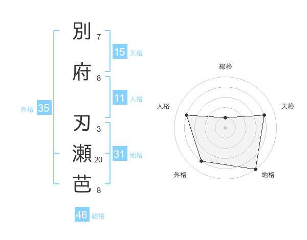 別府 刃瀬芭さんを姓名の画数から五運を鑑定
