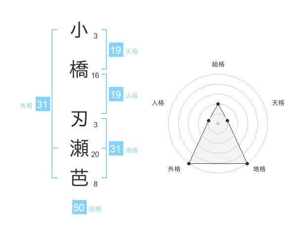 小橋 刃瀬芭さんを姓名の画数から五運を鑑定