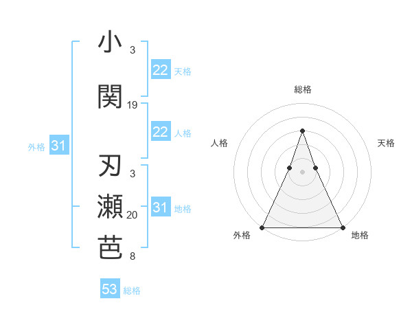 小関 刃瀬芭さんを姓名の画数から五運を鑑定