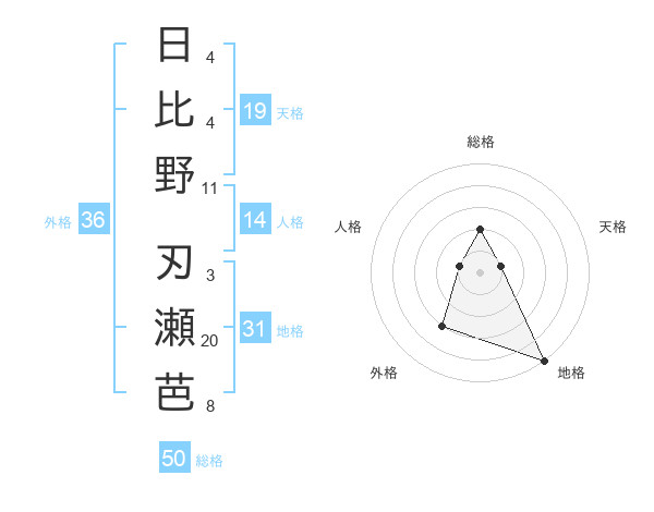 日比野 刃瀬芭さんの総格は50画の2点!