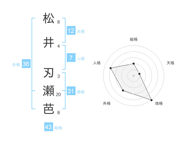 松井 刃瀬芭さんを姓名の画数から五運を鑑定