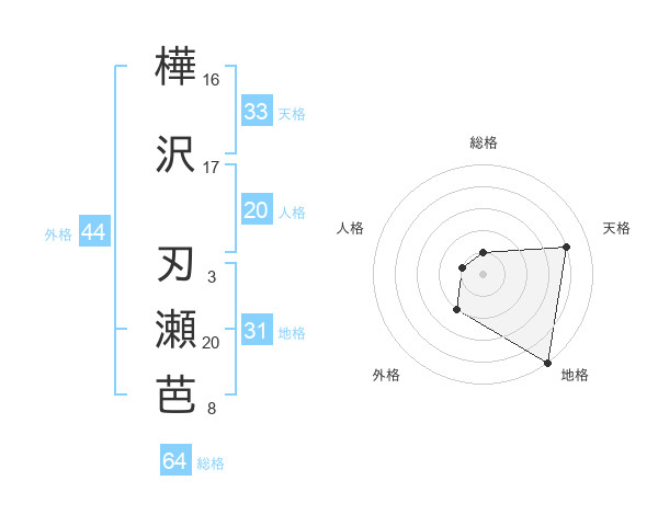樺沢 刃瀬芭さんの総格は64画の1点!