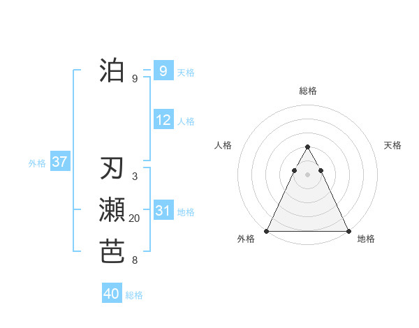 泊 刃瀬芭さんの外格は37画の5点!