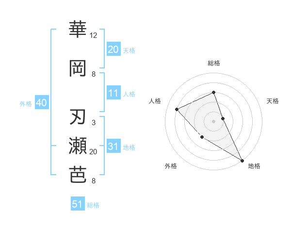 華岡 刃瀬芭さんを姓名の画数から五運を鑑定