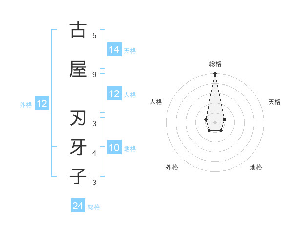 古屋 刃牙子さんの総格は24画の5点!