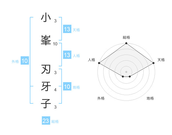 小峯 刃牙子さんの天格は13画の5点!