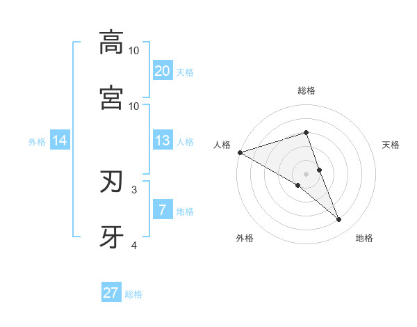 高宮 刃牙さんを姓名の画数から五運を鑑定