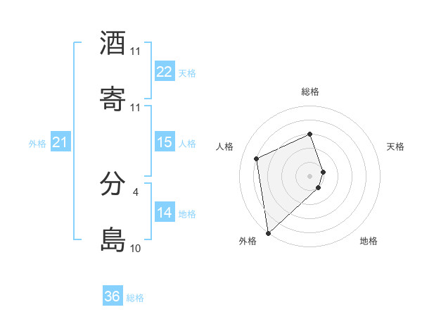 酒寄 分島さんを姓名の画数から五運を鑑定
