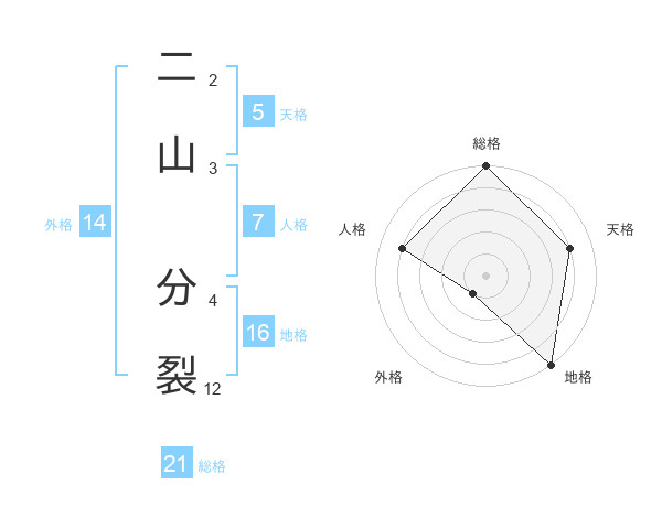 二山 分裂さんの総格は21画の5点!