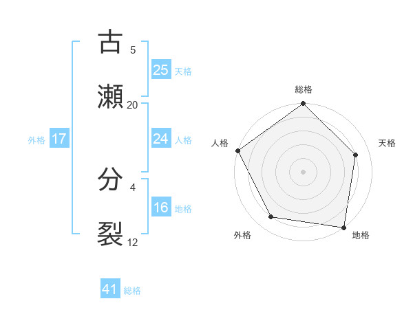 古瀬 分裂さんを姓名の画数から五運を鑑定