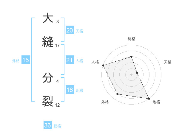 大縫 分裂さんの外格は15画の4点!