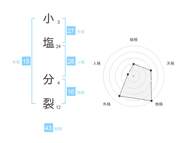 小塩 分裂さんを姓名の画数から五運を鑑定